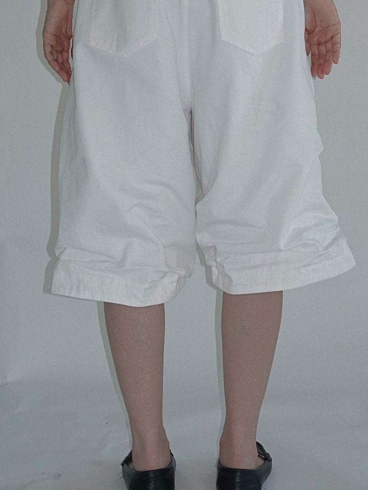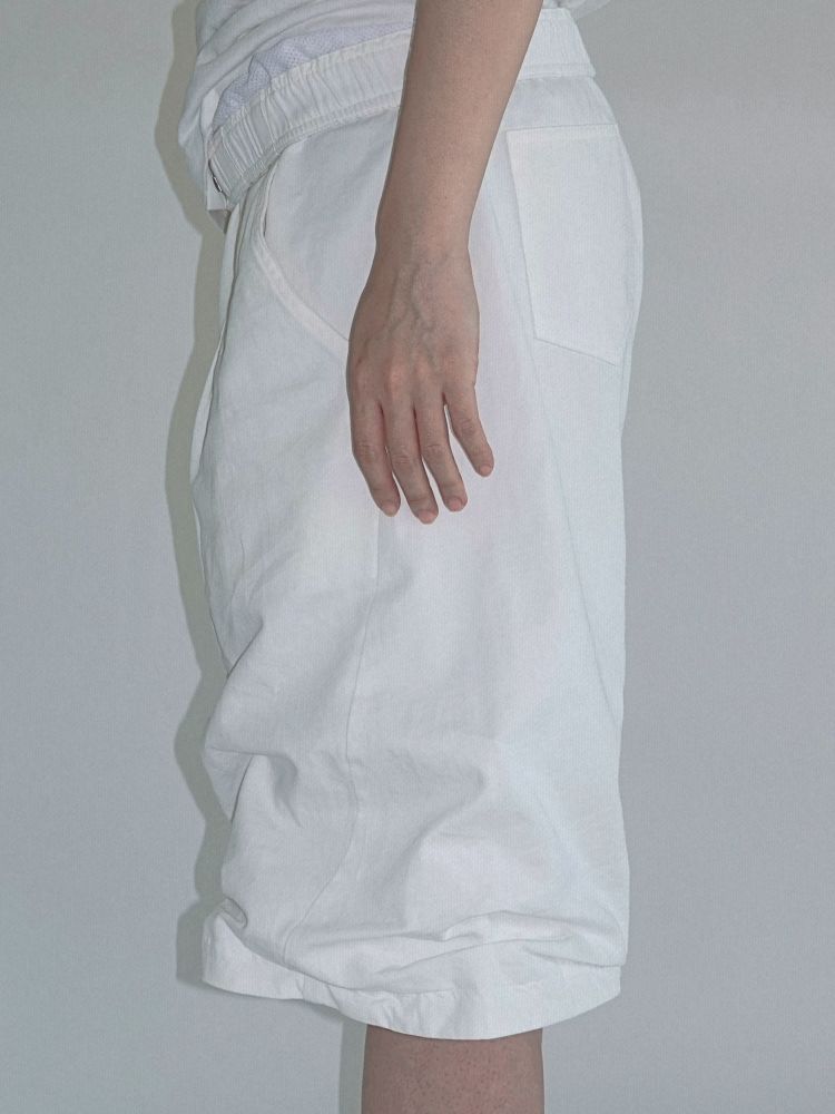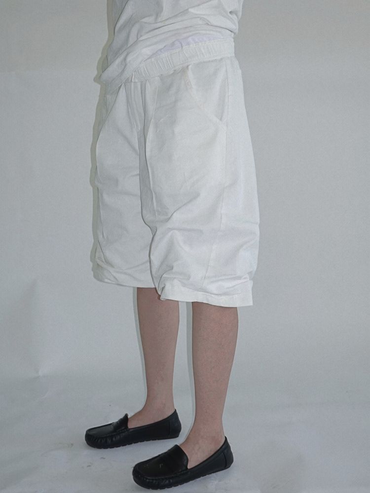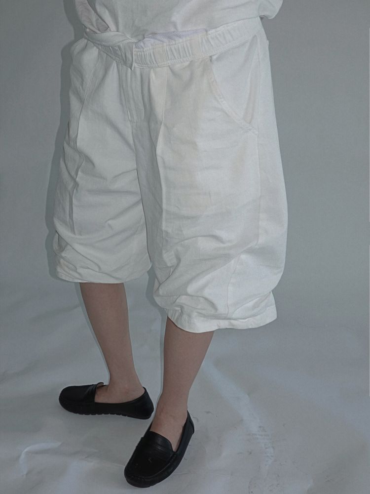 - 사용감에 따라 변형된 실루엣에 영감받아 봉제로 연출한 하프팬츠