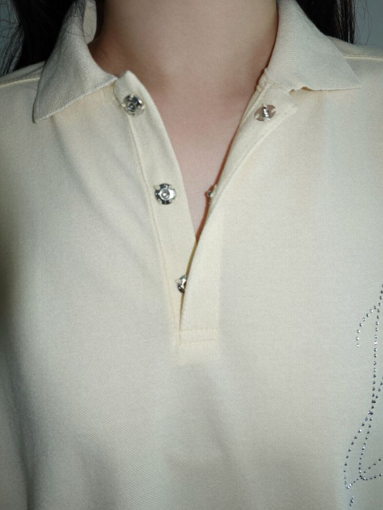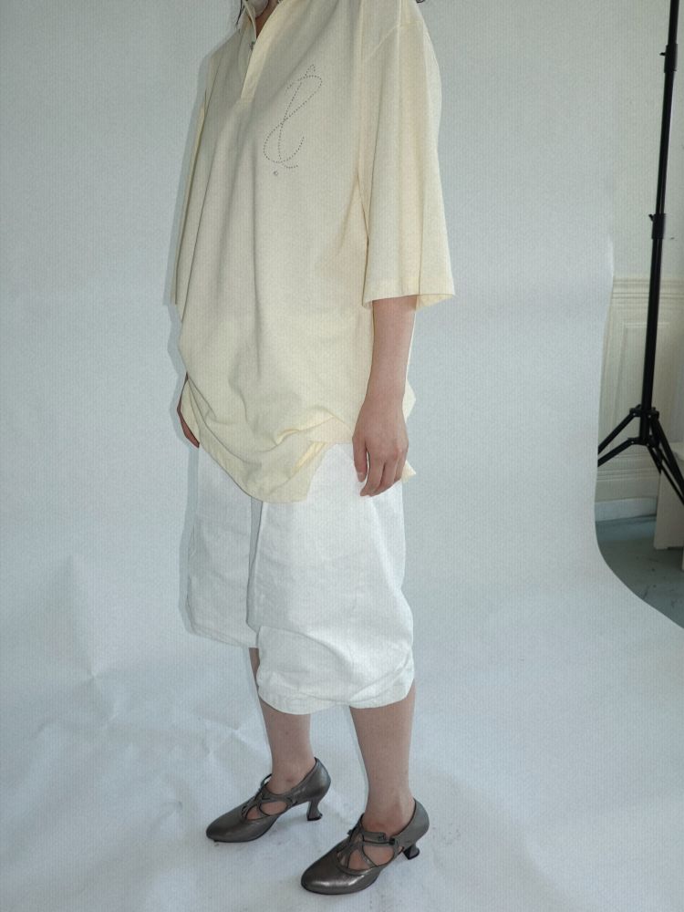 2021 에옹쓰 익스클루시브 시절의 카라티를 리마인드한 2025 튕클 카라 티셔츠입니다. 아무리을 멋을 추구해도 무더운 여름 앞에서는 결국 어떤 실루엣조차 포기하게 되는 철없는 순간들이 있죠. 그 솔직한 마음을 이 카라티에 담았습니다. 찰랑이는 텍스쳐와 오버핏의 조화로 무심한 듯 세련된 무드를 그대로 연출했어요. 에옹쓰의 시그니처 심볼을 핫픽스로 더해 포인트를 주었고, 카라를 오픈할때 자연스레 드러나는 메탈 스냅버튼으로 절제된 매력을 추구합니다.This is the 2025 Twinkle Collar T-shirt, a reimagined version of our exclusive collar tee from eont’s 2021 archive. With its fluid texture and oversized silhouette, it captures an effortlessly refined mood.