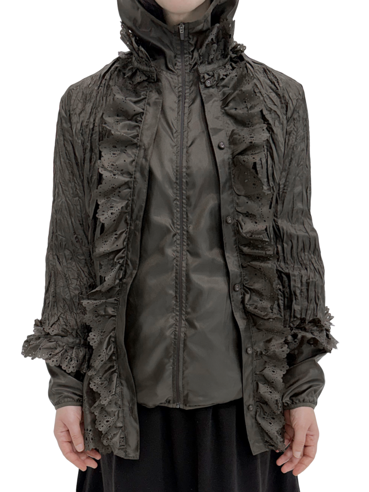 토넬 블라우스와 같은 소재로 구성한 윈드브레이커 재킷입니다. 일반적인 윈드브레이커 소재에서 벗어나 좀더 부드럽고, 광택감이 있어 일상 속 캐주얼함을 추구하는 마음을 담았습니다. 때문에 스커트나 자켓 등 여성복에 믹스매치 하기 탁월하며, 낮은 통기성의 겉감과 안감치고 꽤 도톰한 느낌의 메쉬 소재를 사용하여 은근 따뜻하다는게 특징! 겨울철 가벼운 레이어드 아이템으로 추천합니다.