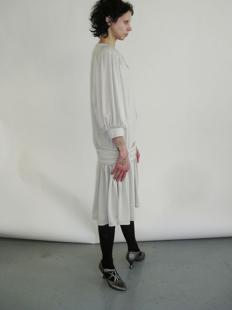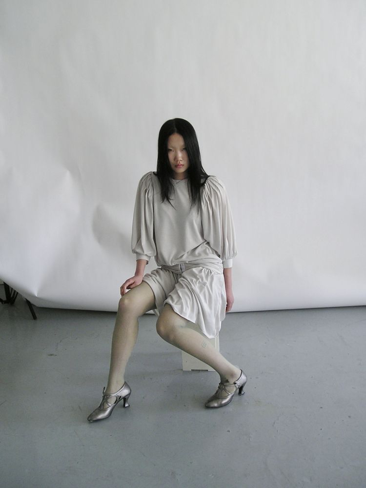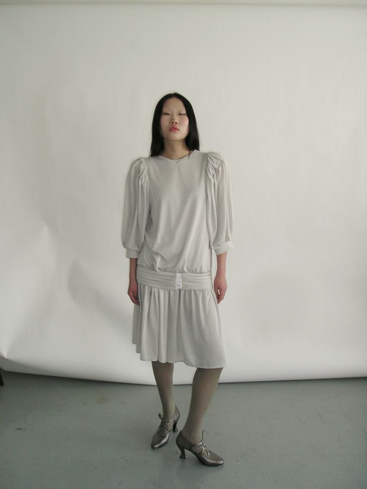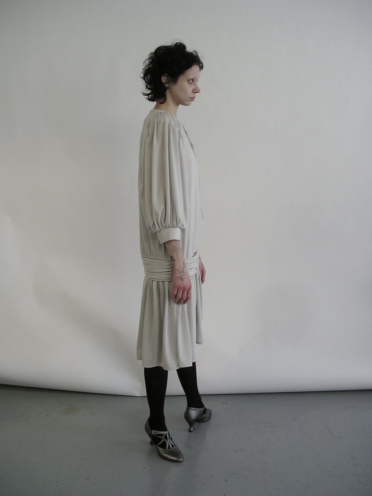 중세적 무드를 캐주얼한 소재에 녹여낸 이 드레스는 에옹쓰가 의도한 대로 절제되면서도 볼륨감 있는 룩을 완성해 그 어느 때보다 만족스러운 아이템이 되었습니다. 어깨 라인에는 여기저기 핀턱 디테일을 더해 풍성한 셔링 느낌을 표현했고, 허리 후크 벨트 디테일은 특히 1920년대 데이 드레스를 연상시킵니다. 고급스러운 무드를 캐주얼한 소재에 녹여 진짜 'day dress'를 구현했다는 건 정말 재밌는 프로젝트였습니다! This dress, which melts a medieval mood into casual material, has completed a look that is both restrained and voluminous as intended by Eont's, making it a more satisfying item than ever. Pin tuck details were added here and there on the shoulder line to express a rich shirring feeling, and the waist hook belt detail is reminiscent of a 1920s day dress.